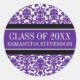 Purple Damask Graduation Custom Year Name Classic Round Sticker