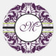 Purple Damask Initial Sticker Letter M Wedding