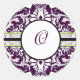 Purple Damask Initial Sticker Letter O Wedding