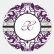 Purple Damask Initial Sticker Letter X Wedding