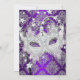 Purple & Silver Masquerade Quinceanera 15th Birthday Party Invitation. Elegant silver jewel mask and purple damask design. Click the "Customise It" button on the product page Zizzago created this design. PLEASE NOTE all images NOT Diamonds Jewels or real Bows!! Customise with your own details and age. Template for Sweet 16, 16th, Quinceanera 15th, 18th, 20th, 21st, 30th, 40th, 50th, 60th, 70th, 80th, 90, 100th,