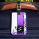 Purple damask pattern and monogram luggage tag
