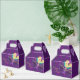 These Purim party favour boxes are sure to impress your guests. The boxes feature a purple damask pattern with a feathered mask and the text, "Happy Purim"