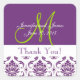 Purple Damask Wedding Favour Thank You Square Sticker