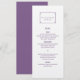 Simple and minimalist Deco Chic Wedding Menu Card with a modern purple art deco ornamental border. This classic and elegant menu is easy to customise with your wedding details. Find more personalisation options by clicking Customise.