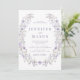 Delight in refined sophistication with this rustic wedding invitation, featuring elegant illustrations of a delicate pastel purple and lilac floral wreath. An ideal choice to add charm to your spring or summer celebration.