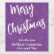 Modern white brush script, Merry Christmas, on a purple denim print background, greeting and business or personal name. Perfect bottle label for the holidays, for colleague, clients, friends. You will receive six 3.5" x 4" printed labels per order at this fantastic price and excellent printing. Easily change text using the Template provided. See "About This Product" at side for more information.