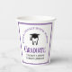 This customisable purple dental school graduation party paper cup features a tooth wearing a graduation cap for a class of 2025 dentistry graduate. Customise with your graduating year for great personalised dental hygienist, orthodontist, or dentist graduation decor.