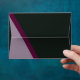 Purple diagonal lines on black envelope