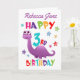 A special 3rd birthday card! This bright fun second birthday card features a blue dinosaur, some pretty stars and colourful text. A cute design for someone who will be three years old.