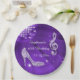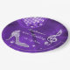 Girl's personalised, elegant custom 60th birthday party celebration paper plates. Beautiful purple/lilac/lavender templates for a woman's 60th year old birthday. These plates have a funky retro disco mirror ball, glamourous printed image rhinestones / diamonds glitter, sequins, jewels sparkle high heels stilettos shoes, and glittery musical note / music note with sparkles on a classy purple/lilac/lavender with white lights and sparkles background. Chic, cute, girly, modern paper plates with trendy, fashionable colours. These cool, groovy, stylish, sophisticated, pretty party plates are decorated / printed on one side only. Perfect plates for dinner dance dancing event parties. PLEASE NOTE: All products on Zazzle have flat printed images. If you need any assistance customising your product please contact me through my store and I will be happy to help.