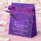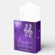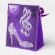Personalised, elegant custom party favour box for womens 40th birthday with glitz and glamour. Beautiful purple, lilac / lavender and white party favour boxes for women with a funky retro disco mirror ball, glamourous printed image rhinestone glitter, sequins, jewels sparkle high heel stiletto shoes, and glittery musical notes / music notes with sparkles on a vibrant purple lights and sparkles background. Chic, classy, cute, girly, modern party favour boxes for 40th birthday in trendy, fashionable colours. These are groovy, stylish, sophisticated, pretty favour boxes . If you need any assistance customising your product please contact me through my store and I will be happy to help.