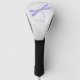 Protect your golf clubs with this unique Purple Dragonfly Personalised Golf Head Cover. Cover design features a colourful dragonfly, a soft white leafy vine against a light grey grunge damask background with an area to personalise with your name. Additional gift items available with this design as well as a variety of colours.