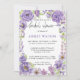 Bridal shower invitation designed with pretty hand painted watercolor flowers in purple and lilac.