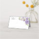 Wedding reception place card designed with pretty hand painted watercolor flowers in purple and lilac.