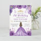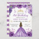Elegant watercolor Blonde Haired princess in purple dress design with purple flowers, butterflies and gold glitter confetti.