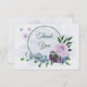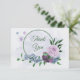 Purple dusty blue flowers green leaves wedding thank you card