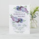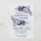 Purple dusty blue flowers greenery bridal shower invitation