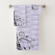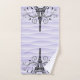 Add a touch of Paris to your bath with this unique Purple Eiffel Towel Flourish Towel Set. Towel set design features a vibrant wavy background with the Eiffel Tower adorned with elegant flourishes and space to personalise with your name. Additional colours available with this design as well. Please contact me directly if you need assistance with personalisation.