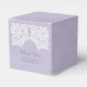 Simple and sophisticated Elegant Lace Wedding Favour Boxes featuring a white lace doily motif on a light purple faux vintage paper background. These classic and stylish boxes are perfect for a rustic wedding. Easy to customise with your wedding details. Click "Customise It" to find more personalisation options.