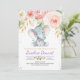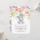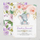 Celebrate your upcoming arrival with this enchanting Purple Elephant Floral Baby Shower Invitation. Featuring a charming watercolor elephant adorned with a delicate crown of purple roses and lush greenery, this design perfectly blends sweetness with modern elegance. It is an ideal choice for a girl's baby shower, offering a whimsical yet sophisticated aesthetic that your guests will love. Easily customise the text to include all your special event details and set a magical tone for your celebration.