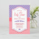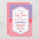 Invite your friends and loved ones with this pink and lavender elephant, polka dots and chevron striped baby shower invitation to your baby shower to celebrate your new addition to your family.