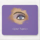 An artistic illustration of a beautiful woman's eye with a blue iris and vibrant shades of purple and violet for eye shadow. There is a splattered border around the eye which adds mystery to the image. The background is a vivid purple that matches one of the hues in the eye makeup. This design will appeal to most women, but perhaps makeup artists and models in particular.