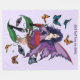 Cute black haired fairy all in purple and red sitting on a mushroom in a backdrop of purple