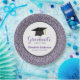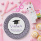This graduation paper plate features a stylish purple faux glitter border and accented with a graphic of a graduation hat (mortarboard). Personalise these fun party plates with the graduate's name, graduating year and school.