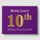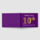 This guest book design features the ordinal number "10th" with a faux gold-like appearance. It also features a customised name, and a purple coloured background. It could be used at a party for somebody celebrating their tenth birthday. [~Z0000057]