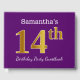 Purple, Faux Gold 14th Birthday Party; Custom Name Guest Book