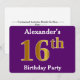 This invitation design features the ordinal number "16th" with a faux gold-like appearance. It also features a personalised name, and a purple coloured background. The event details on the back can be customised. It could be used to invite people to somebody’s sixteenth birthday party. [~Z0000014]