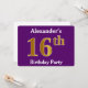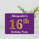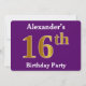Purple, Faux Gold 16th Birthday Party; Custom Name Invitation