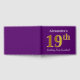 This guest book design features the ordinal number "19th" with a faux gold-like appearance. It also features a personalised name, and a purple coloured background. It could be used at a party for somebody celebrating their nineteenth birthday. [~Z0000057]