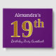 Purple, Faux Gold 19th Birthday Party; Custom Name Guest Book