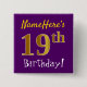 Purple, Faux Gold 19th Birthday, With Custom Name 15 Cm Square Badge