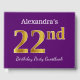 This guest book design features the ordinal number "22nd" with a faux/imitation gold-like appearance. It also features a personalised name, and a purple coloured background. It could be used at a party for somebody celebrating their twenty second birthday. [~Z0000057]