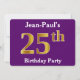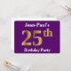 This invitation design features the ordinal number "25th" with a faux gold-like appearance. It also features a customisable name, and a purple coloured background. The event details on the back can be customised. It could be used to invite people to somebody’s twenty fifth birthday party. [~Z0000014]