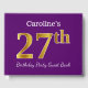 This guest book design features the ordinal number "27th" with a faux/imitation gold-like appearance. It also features a personalised name, and a purple coloured background. It could be used at a party for somebody celebrating their twenty seventh birthday. [~Z0000057]
