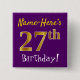 Purple, Faux Gold 27th Birthday, With Custom Name 15 Cm Square Badge