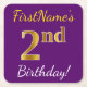 Purple, Faux Gold 2nd Birthday + Custom Name Square Paper Coaster
