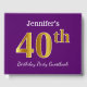 Purple, Faux Gold 40th Birthday Party; Custom Name Guest Book