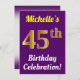 Purple, Faux Gold 45th Birthday Celebration + Name Invitation