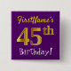 Purple, Faux Gold 45th Birthday, With Custom Name 15 Cm Square Badge