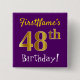 Purple, Faux Gold 48th Birthday, With Custom Name 15 Cm Square Badge