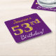 Purple, Faux Gold 53rd Birthday + Custom Name Square Paper Coaster
