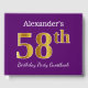 This guest book design features the ordinal number "58th" with a faux/imitation gold-like appearance. It also features a customised name, and a purple coloured background. It could be used at a party for somebody celebrating their fifty eighth birthday. [~Z0000057]
