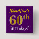 Purple, Faux Gold 60th Birthday, With Custom Name 15 Cm Square Badge