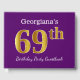 This guest book design features the ordinal number "69th" with a faux/imitation gold-like appearance. It also features a personalised name, and a purple coloured background. It could be used at a party for somebody celebrating their sixty ninth birthday. [~Z0000057]
