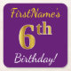 Purple, Faux Gold 6th Birthday + Custom Name Square Paper Coaster